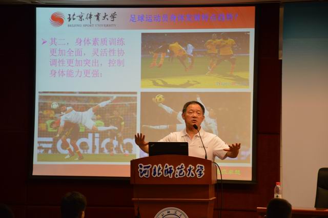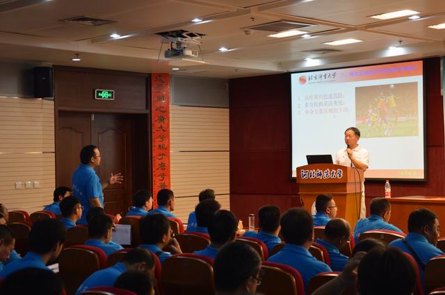 2015年8月6日上午,在太阳成集团tyc234cc员工讲堂,北京体育大学教育公司足球教研教研室主任、博士生导师张廷安教授为2015年全国青少年校园足球小学体育骨干教师国家级专项培训学员作了关于“现代足球发展趋势”的专题讲座。