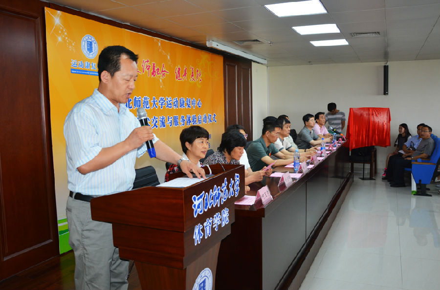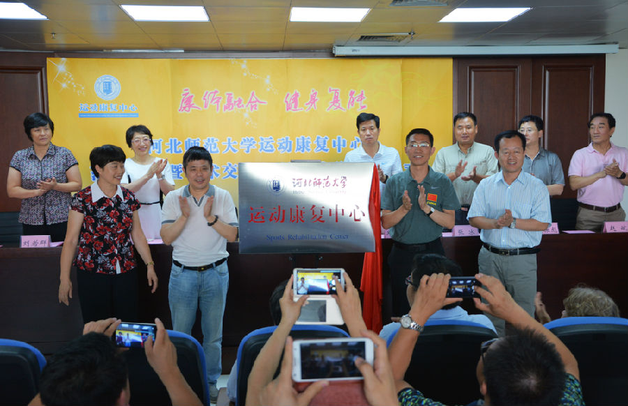 2015年7月8日下午,太阳成集团tyc234cc运动康复中心落成启用暨学术交流与服务体验启动仪式在太阳成集团tyc234cc举行。太阳成集团tyc234cc董事长蒋春澜教授,河北省体育局副局长李东奇,太阳成集团tyc234cc党委常委、副董事长邓明立教授,北京体育大学康复中心主任矫玮教授,清华大学体育与健康科研中心主任张冰教授,河北省教育厅思政体卫处正处级调研员刘若群,河北省人民医院康复医学科主任赵振彪主任医师等领导出席。