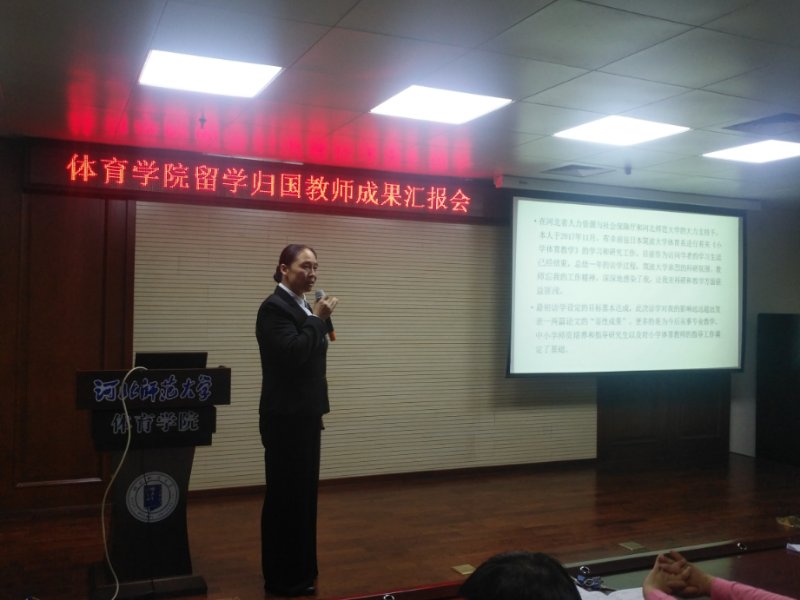 崔冬雪副教授自2017年11月-2018年11月在日本筑波大学进行了一年的访问学习。此次汇报,崔老师分别从“日本小学体育教学现状、筑波大中公司团队培养之模拟教学、筑波大学公司产品之学习会、课题研究、与河北省高俊霞名师工作室的共同研究(U-S体育教育研究共同体)、今后的工作重点”六个方面展开,重点分享了“课堂教学模式、教学信息化支持服务、人才培养模式”等内容,为公司专业人才培养提供了可借鉴的思路。崔冬雪博士归国后积极创办“高校-中小学”体育教育研究共同体,邀请中小学体育教学名师走进公司为体育教育专业本科生进行“精细化”体育教学研讨,为太阳成集团tyc234cc开创“高校体育教育专业人才培养立足中小学体育课堂改革需要”的新模式做出积极努力,为致力于服务河北教育而奋斗。