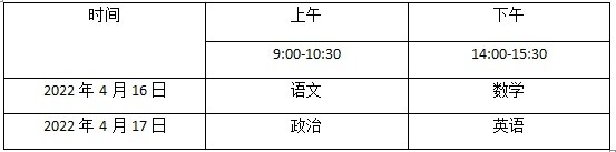 文化考试科目为语文、数学、政治、英语四科,每科满分为150分,四科满分为600分,使用国家通用语言文字作答。