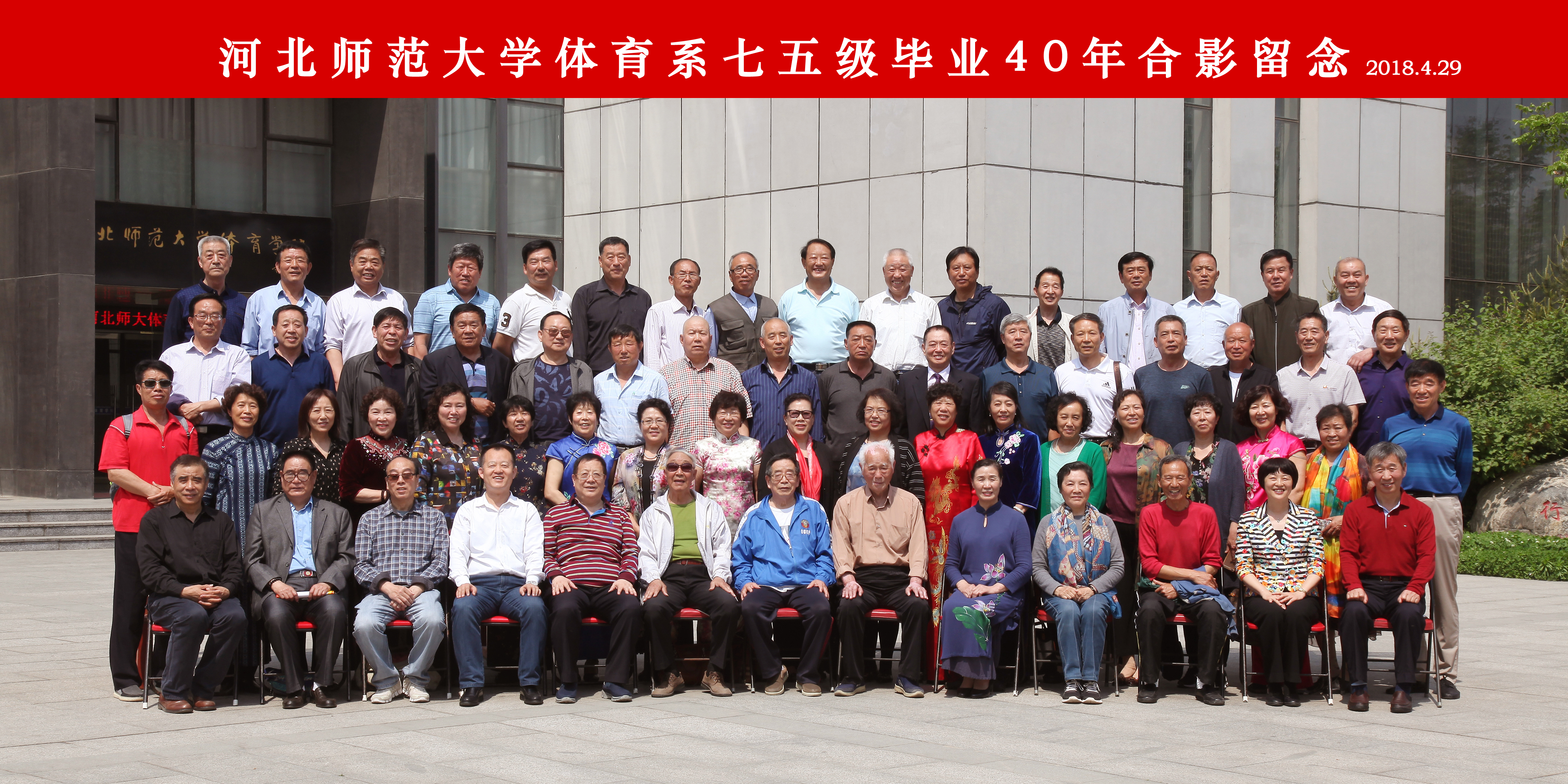 4月28日-29日,体育系75级56名同学,从全国各地重返母校,相聚在校园,纪念毕业40周年。已过花甲之年的75级员工久别重逢格外亲,同学情谊源流长。