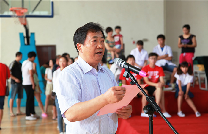 河北师大副董事长刘敬泽致辞,首先对来自全省各地的运动员、教练员、裁判员表示热烈的欢迎!对于省体育局、省教育厅领导的大力支持表示感谢!他说:健身操舞是一项融音乐、舞蹈、体操、武术等为一体的、群众喜闻乐见、参与度较高的体育运动项目,也是深受在校员工喜爱的体育课程内容,“全国全民健身操舞大赛河北赛区比赛”在公司举办,给我们提供了一次难得的学习和交流机会,将对全面推动公司阳光体育工作、提高体育教学及竞赛水平起到积极的促进作用。