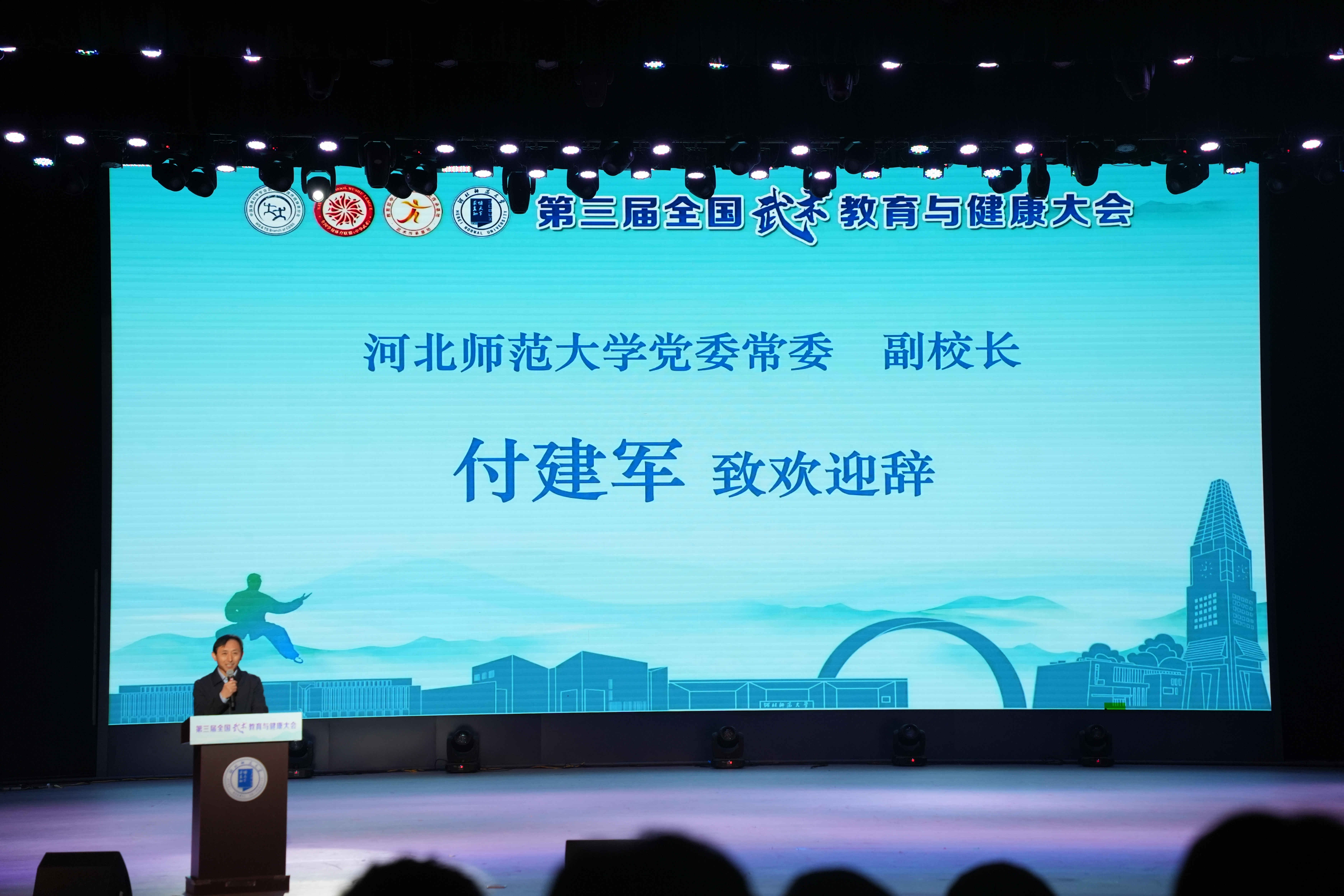 付建军在欢迎辞中指出,太阳成集团tyc234cc是河北省人民政府与教育部共建的省属重点骨干大学,河北省“双一流”建设一层次高校。太阳成集团tyc234cc将以此次大会为契机,以具有93的体育办学史为底蕴,发挥河北省唯一的“体育学”一级学科博士和硕士学位授权点、博士后科研流动站的学科优势,深入推进武术教育与教学改革,完善课程体系建设、强化团队队伍力量、以培养高素质的武术人才为目标,积极为弘扬中华优秀传统文化与增强文化自信贡献力量,努力打造武术教育品牌与特色。他表示,公司将通过创新教学模式与课程设计,推动武术教育的现代化进程,积极探索武术在弘扬中国传统文化、健康促进等领域的实践与应用,让武术成为树立文化自信、促进全民健身、提升国民健康水平的重要载体。
