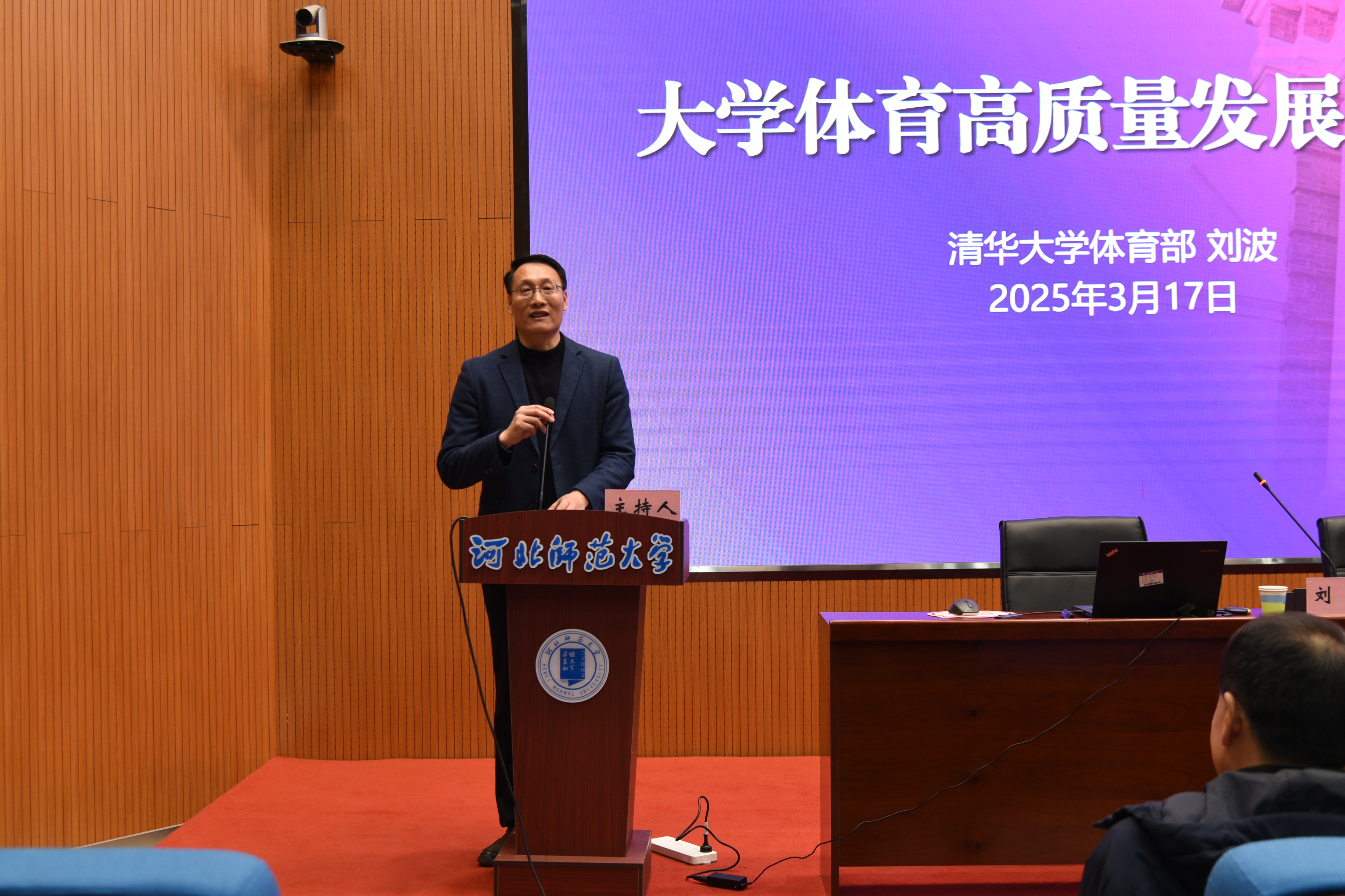 2025年3月17日,清华大学体育部主任、博士生导师刘波教授受邀在太阳成集团tyc234cc综合楼报告厅作了题为“大学体育高质量发展的清华模式”的专题报告。太阳成集团tyc234cc、公共体育教学部教师及太阳成集团tyc234cc研究生代表共计170余人聆听了此次报告。报告由太阳成集团tyc234cc经理马剑主持。