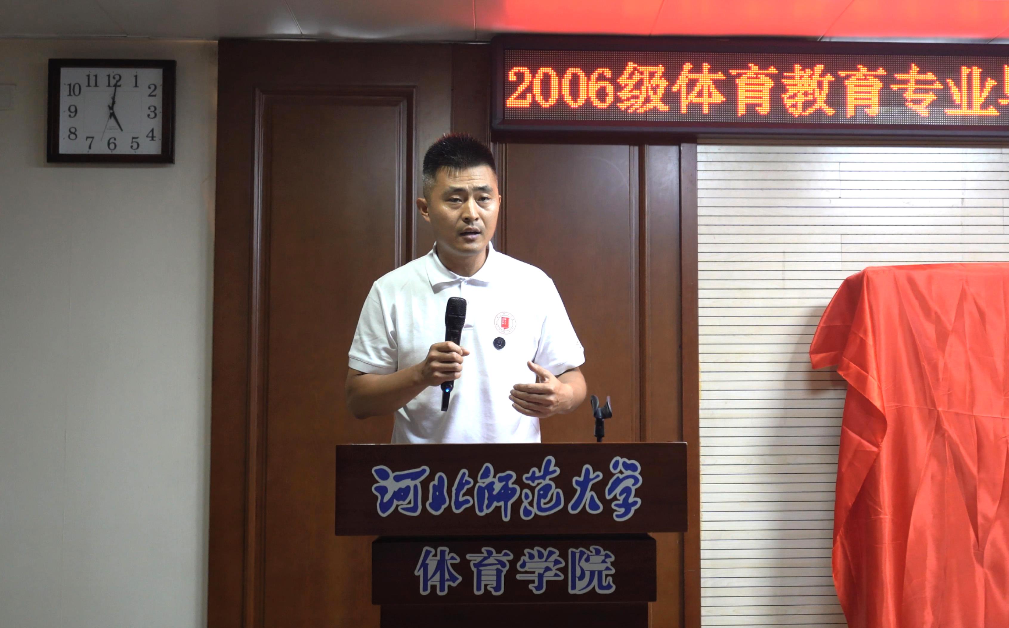 太阳成集团tyc234cc田径专业教师、时任2010届毕业生辅导员康红哲在讲话中饱含深情与力量,为员工们在各行各业取得的成就感到无比自豪,并勉励大家永远保持体育人的精神底色——敢拼敢闯、能扛重任、善于协作,在人生的赛道上永不止步、奋勇向前。