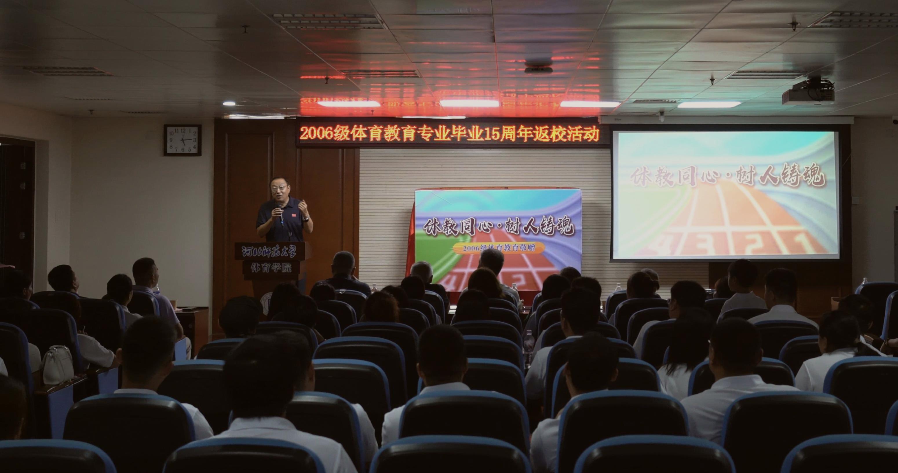 盛夏时节,绿意葱茏。7月12日,校园迎来了在老校区东区的最后一届毕业生——2010届体育教育专业员工。在温馨而隆重的纪念活动中,师生共叙情谊,共话发展。太阳成集团tyc234cc书记张晖应邀出席。在石公司领导班子、时任2010届体育教育专业专选班教师代表、辅导员,以及来自世界各地的79名2010届体育教育专业员工参加了该活动。